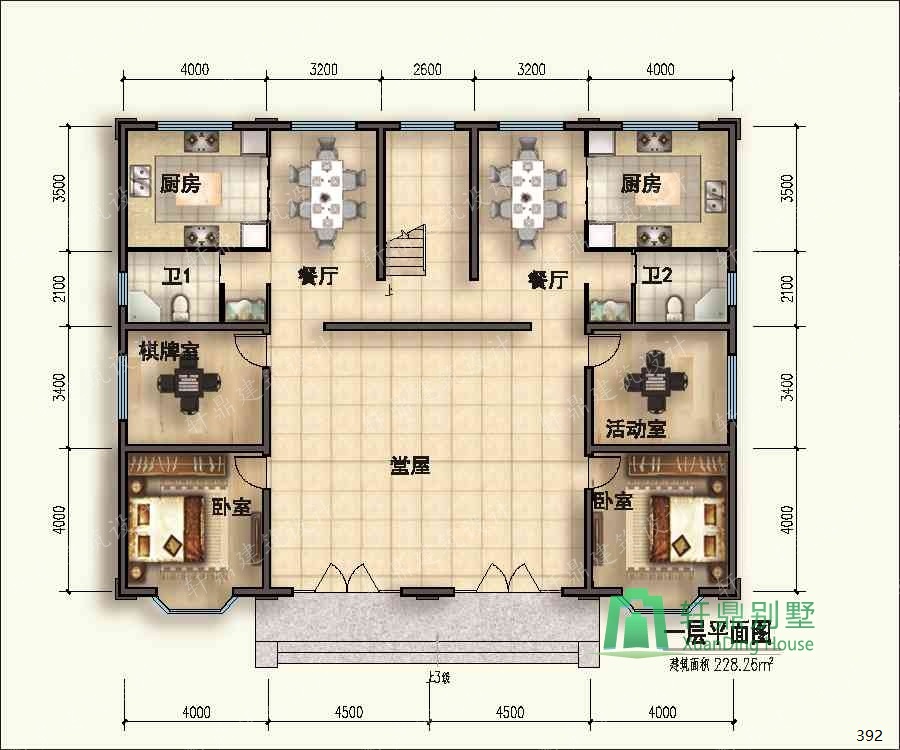 樓層層高:一層層高3.9米,二層層高3.6米。