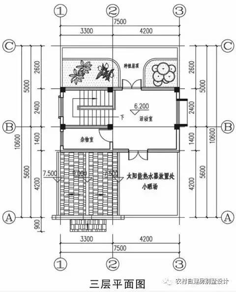 本戶型功能分區(qū)明確、合理,主要房間均采用南北向,通風(fēng)、采光良好;立面上秉承傳統(tǒng)民居建筑風(fēng)格,并適當(dāng)創(chuàng)新。在設(shè)計(jì)中力求節(jié)約用地,增加居家情趣。立體綠化(屋面、散水種植)增加了建筑保溫隔熱性能,還改善了建筑室內(nèi)外小環(huán)境,減少建筑能耗。