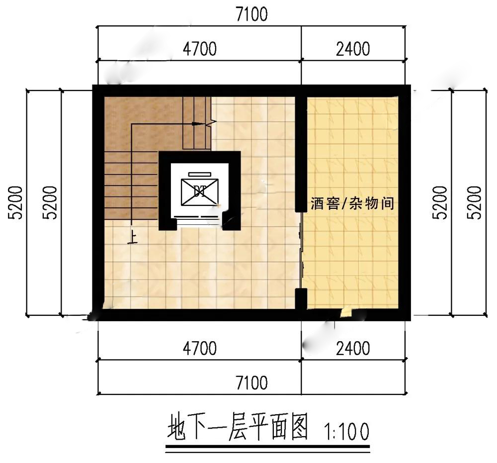 地下層:設(shè)家用電梯,方便老人上下樓;酒窖和雜物間,存放美酒和腌酸菜。