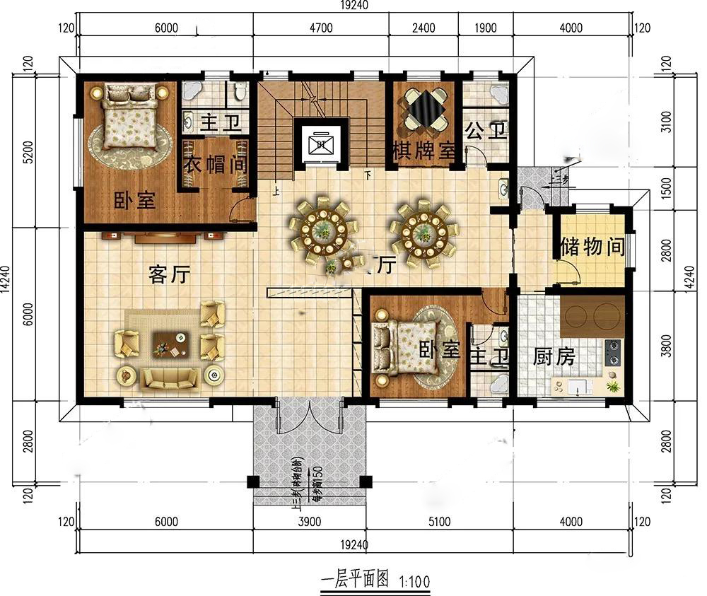一層:入戶設(shè)玄關(guān),可隔斷,保護(hù)隱私;客廳開(kāi)闊,活動(dòng)范圍寬敞;廚房設(shè)土灶,單獨(dú)建造,隔離油煙。