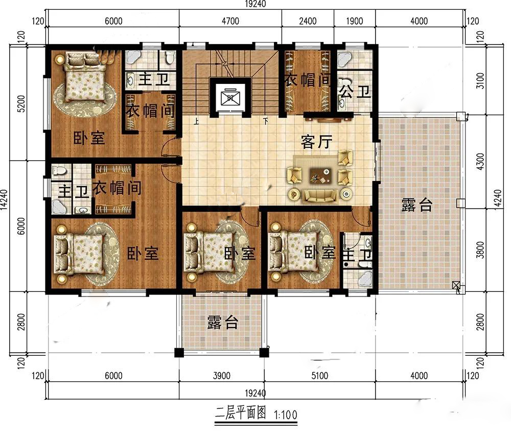 二層:4個(gè)臥室主次有別,滿足全家人起居;一排露臺(tái)可滿足晾曬,觀景視野開(kāi)闊,心情愉悅。