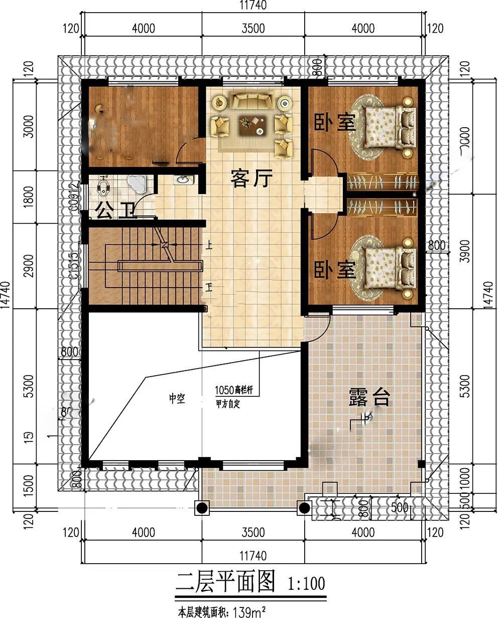 二層:挑空客廳,視野明亮,提升別墅檔次;3個臥室大小適中,滿足家人的日常起居;露臺打造空中花園,享受田園樂趣。