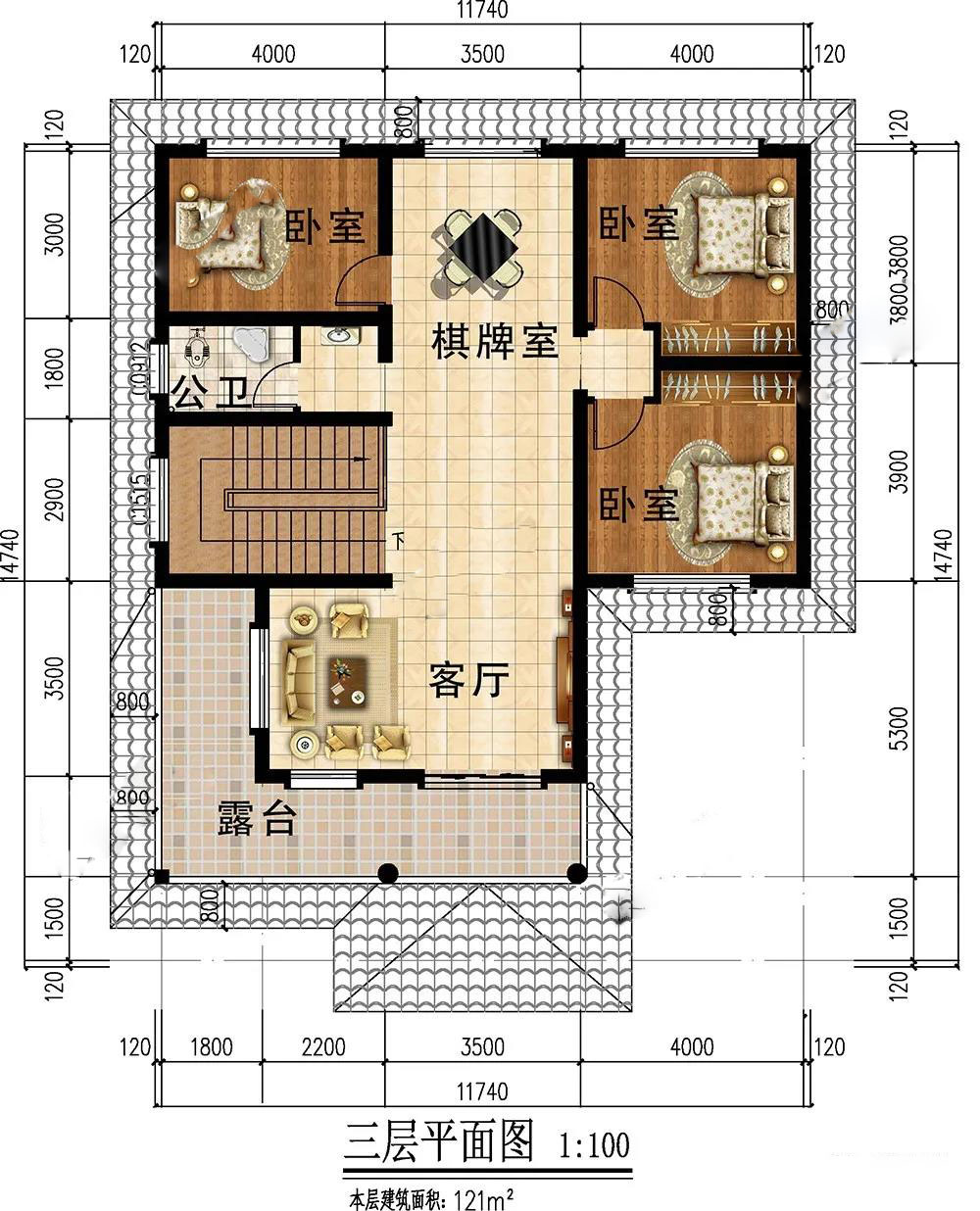 三層:臥室設(shè)置充裕,滿足家人起居后,還能方便接待親友;棋牌室供家人休閑娛樂,豐富日常生活