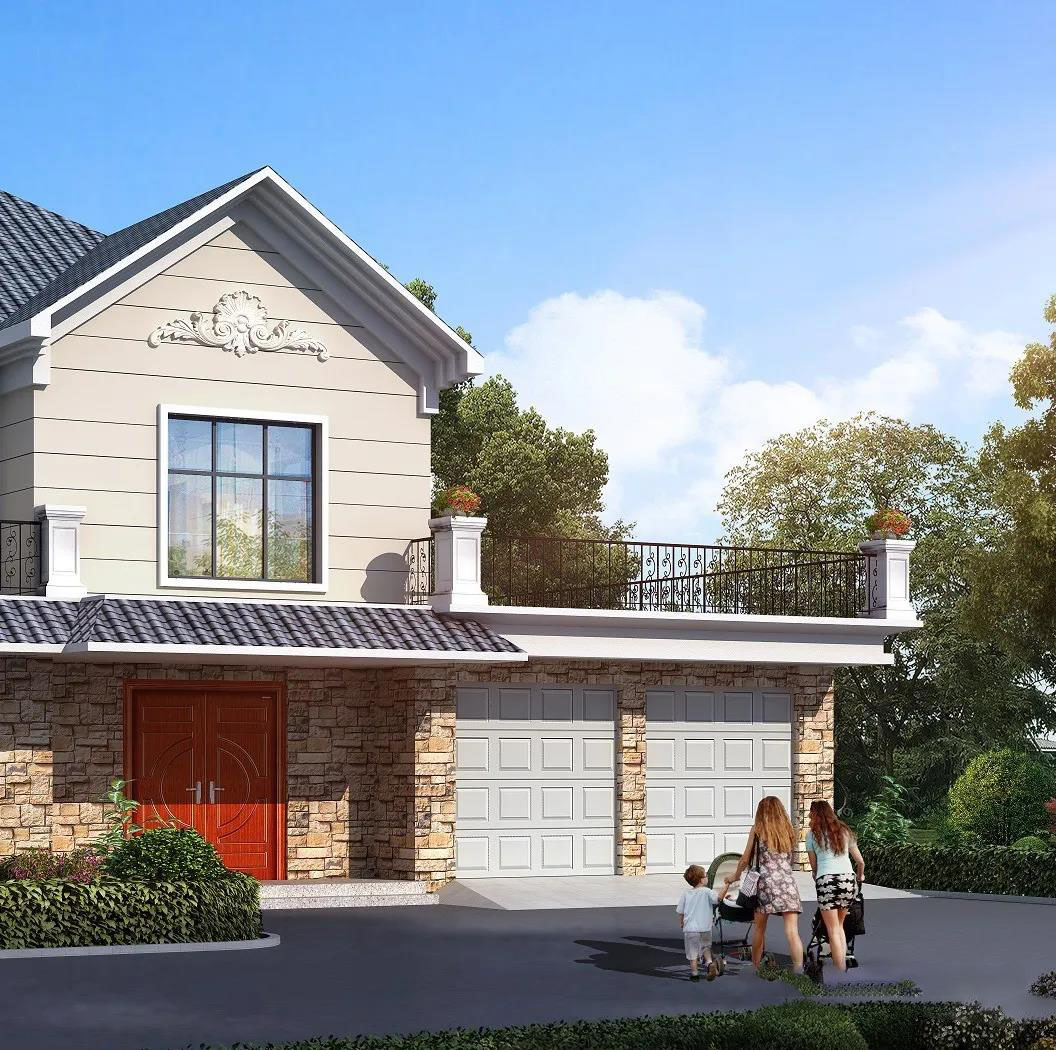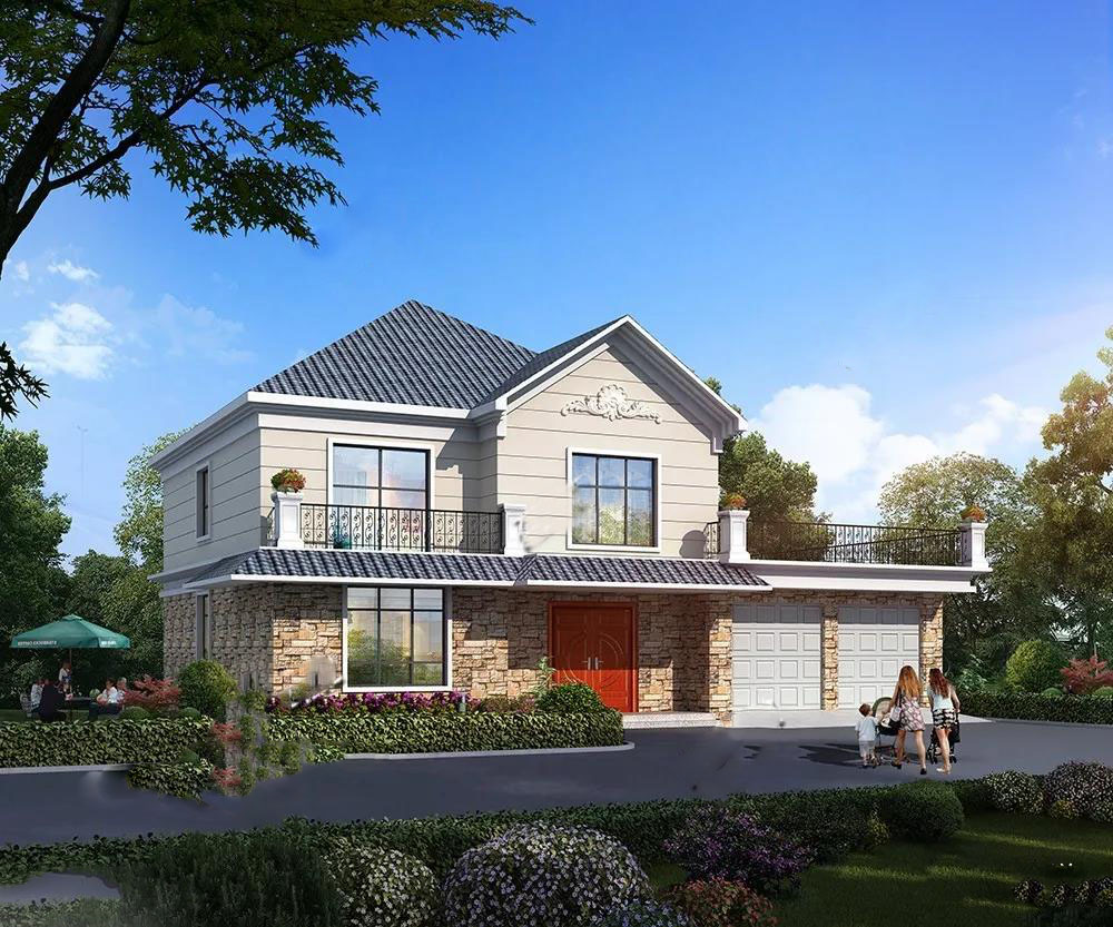 別墅屋頂采用藍色波形瓦,外墻以乳白色真石漆和棕色文化石搭配,清新自然,大大的露臺,盡賞美麗鄉(xiāng)村風光。