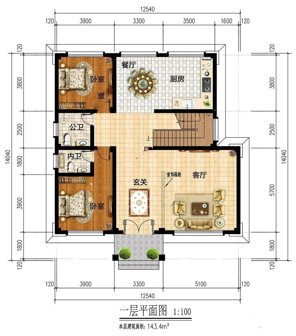 一層:入戶設玄關,裝飾隔斷過渡到客廳,家庭人氣滿滿;廚房餐廳一體化設計,用餐愉悅溫馨;整體動靜分區(qū),臥室安靜不被打擾。