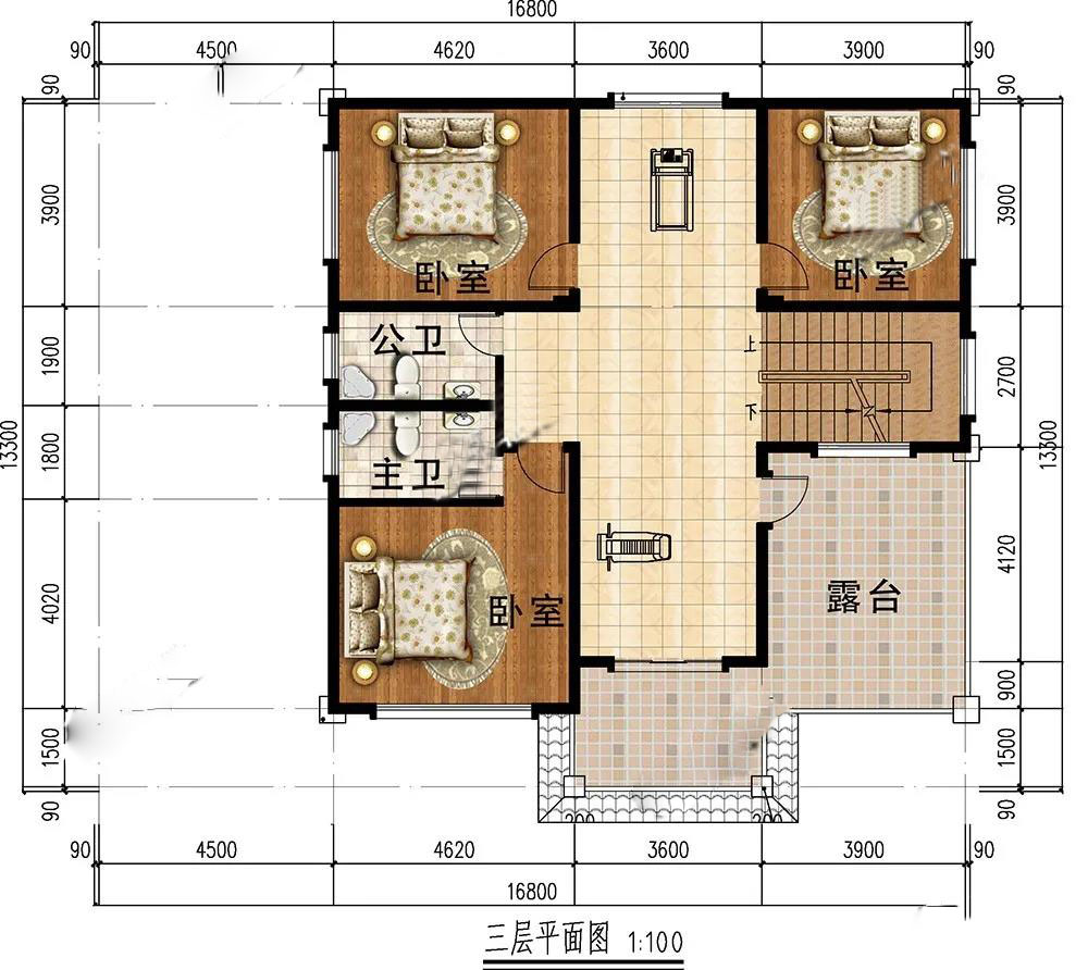 三層:臥室充裕,家人居住無憂;健身房可讓家人養(yǎng)成健康的生活習慣。