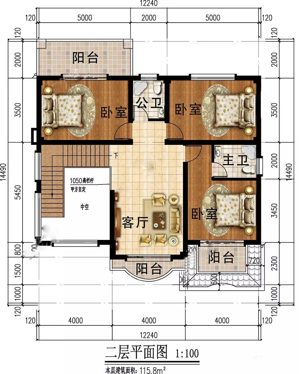 二層:挑空客廳,開(kāi)闊視野;3個(gè)臥室,大小合理,居住溫馨;陽(yáng)臺(tái)與臥室連通,家人可以在此喝茶觀景