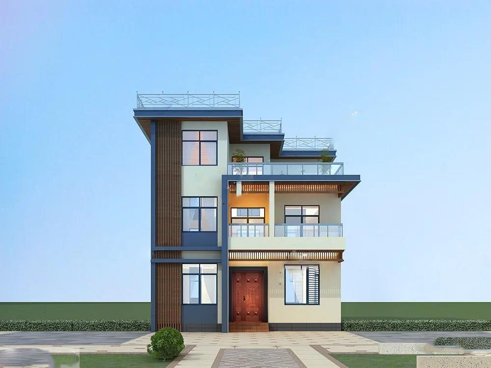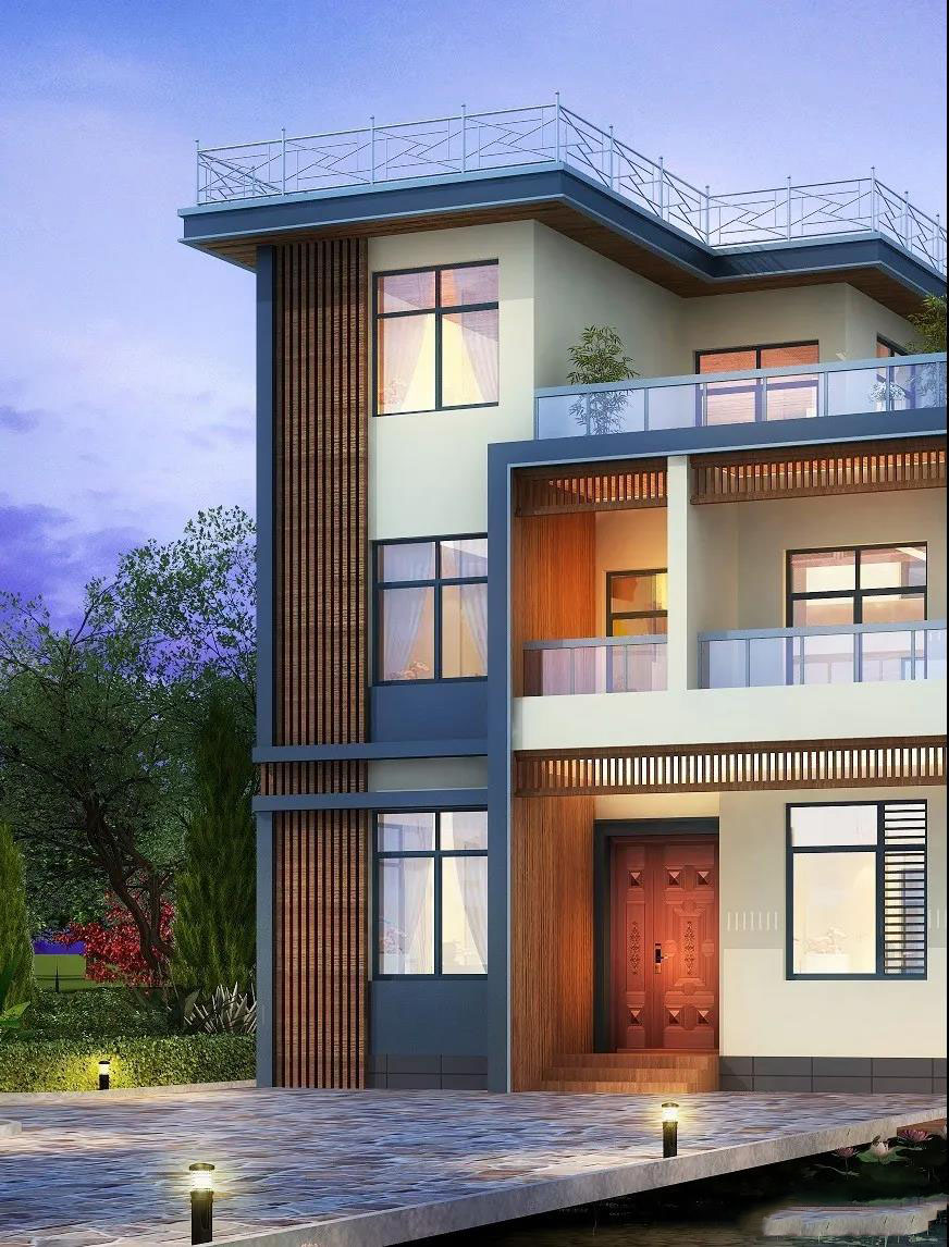 別墅為前衛(wèi)潮流的現(xiàn)代風(fēng)格,平屋頂設(shè)計(jì),多窗多露臺,觀景空間開闊,米黃色真石漆搭配仿木紋真石漆裝飾外墻,在鄉(xiāng)村注定獨(dú)樹一幟。
