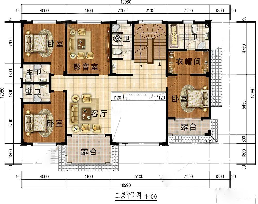 二層:挑空復(fù)式樓設(shè)計(jì),空間明亮、視野通透;3個(gè)臥室均是套房設(shè)計(jì),帶來(lái)大大的生活享受。