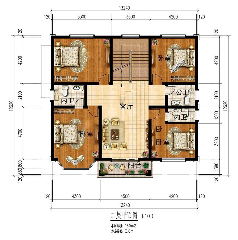二層:4個(gè)臥室主次分明,主臥帶內(nèi)衛(wèi)和飄窗,享受生活;客廳溫馨,給家人提供聚會(huì)休閑的空間,還能在陽(yáng)臺(tái)喝茶。