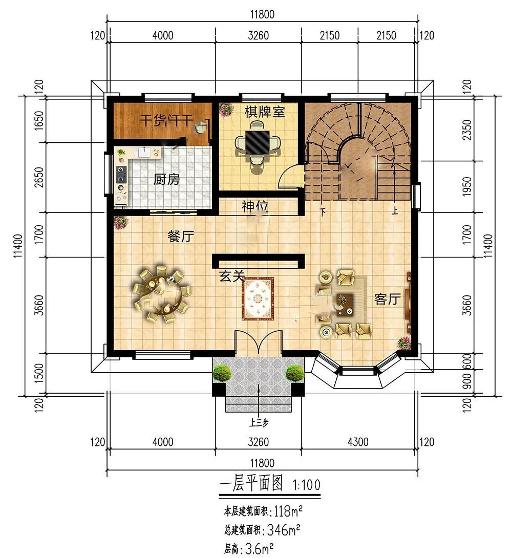 一層:入戶設(shè)玄關(guān),客廳八角落地窗通透明亮,視野開闊;廚房內(nèi)設(shè)干貨間,存儲糧油米面,貼心備至。