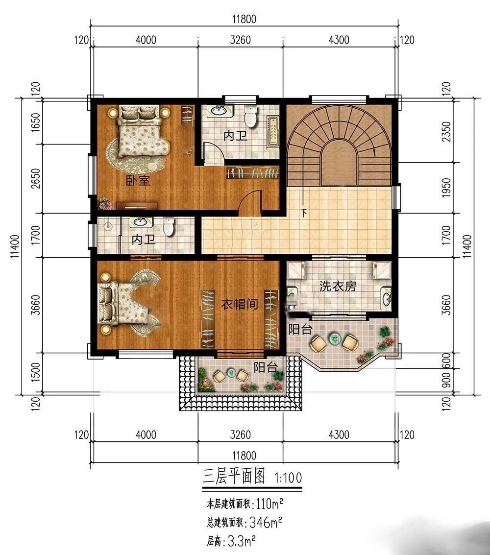 三層:臥室充裕,全家居住無憂;專門設(shè)置洗衣房連通陽臺,方便集中清洗和晾曬衣物