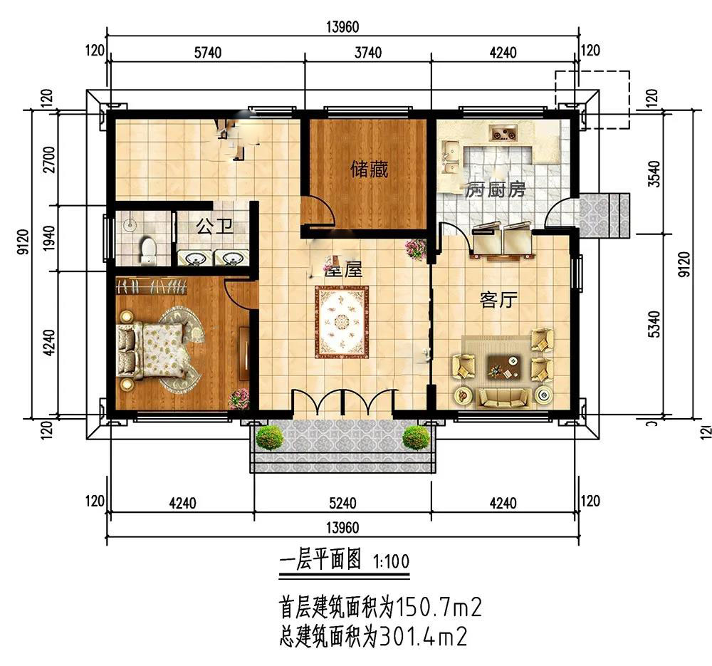 一層:入戶設(shè)堂屋,保留傳統(tǒng)習(xí)俗,接地氣;廚房餐廳一體化,溫馨緊湊。