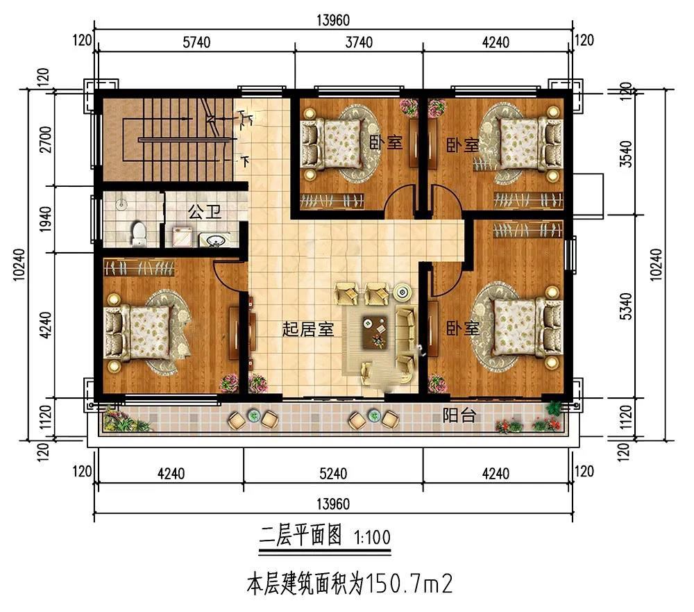 二層:4個(gè)臥室大小適中,衛(wèi)生間干濕分離,有利健康;小起居室連通露臺,聚集家人休閑娛樂