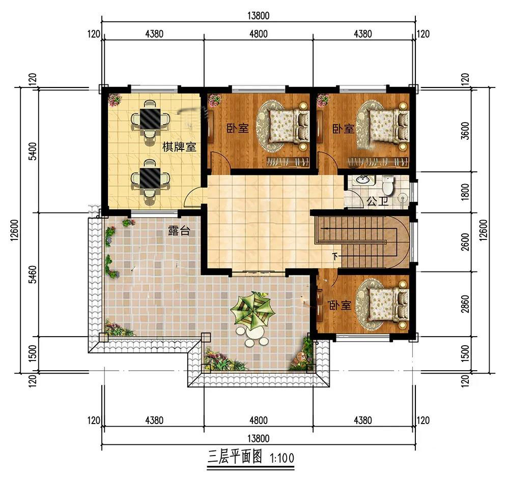 三層:臥室充裕,滿足大家庭人口居?。黄迮剖疫B通露臺(tái),休閑娛樂,放松身心