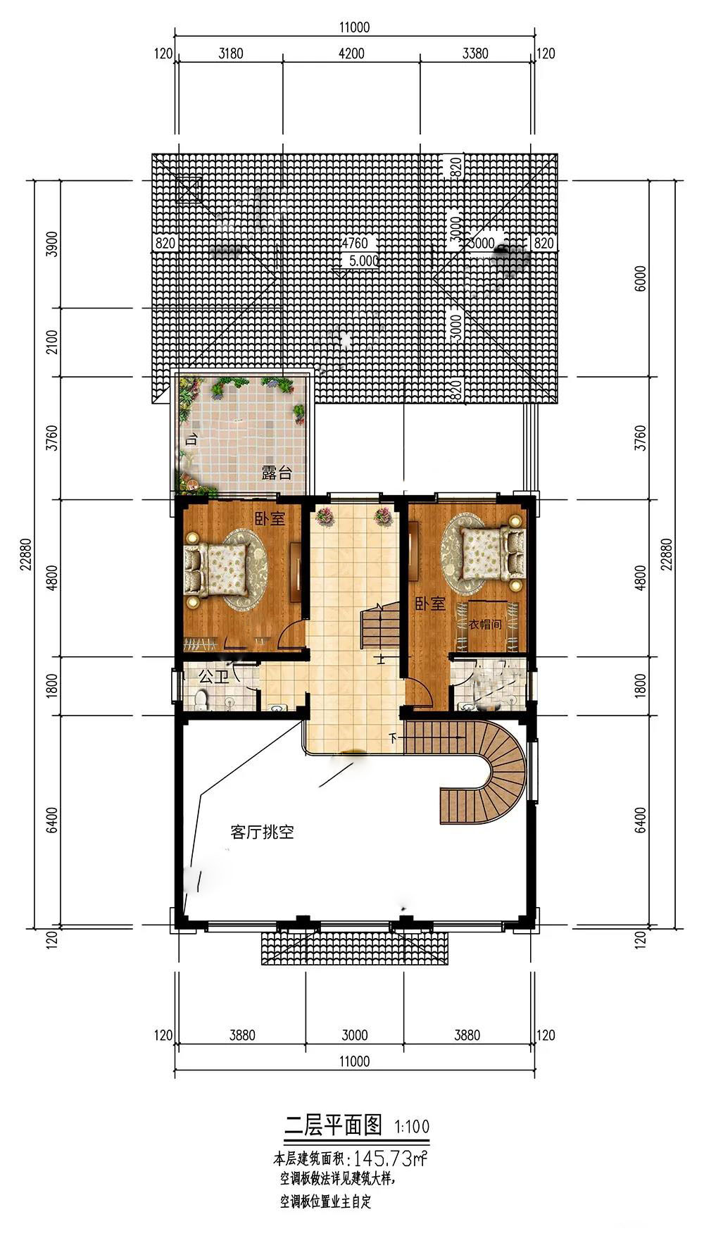二層:2個(gè)臥室,起居舒適;1個(gè)大露臺(tái),加強(qiáng)采光通風(fēng);客廳挑空,視野開闊,逼格極高。