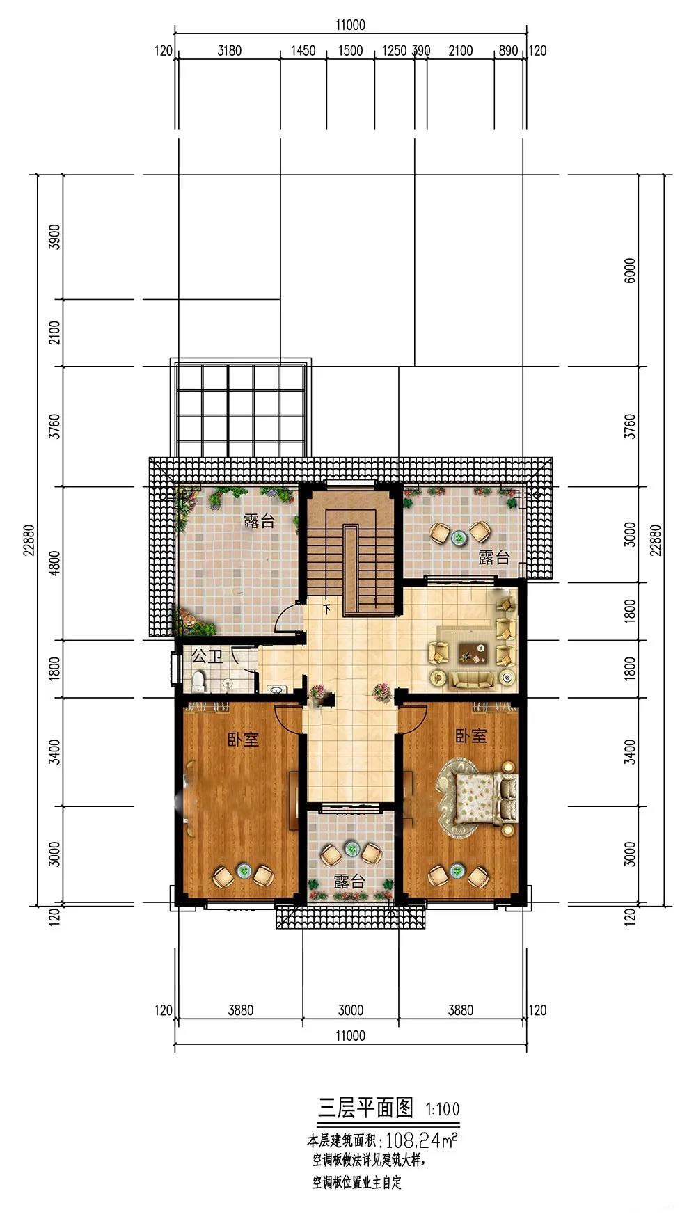 三層:南北兩面共設(shè)有3個(gè)露臺(tái),通透明亮,滿足晾曬,也可打造空中花園。