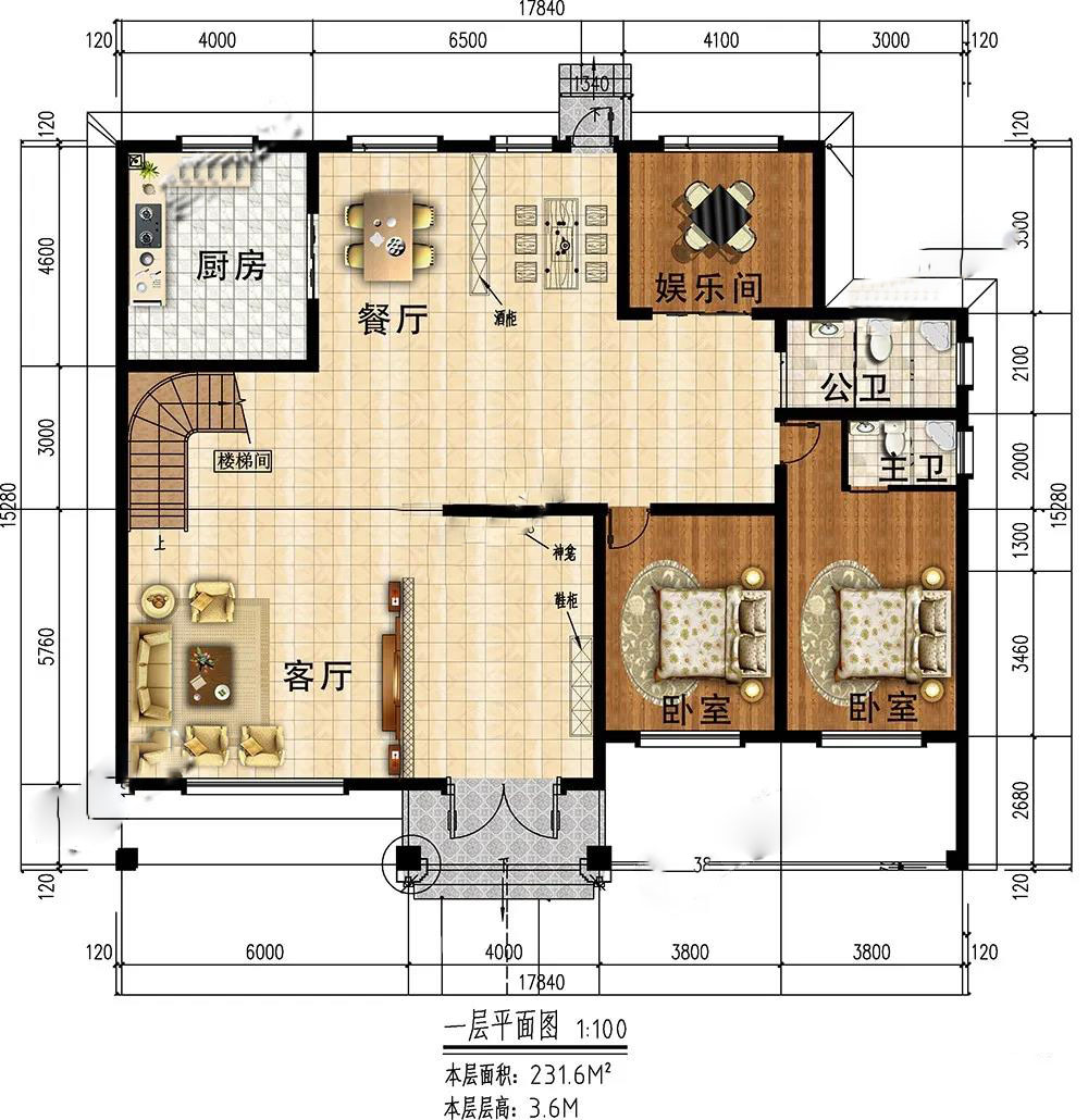 一層:入戶設玄關,收納功能和放置神龕;空閑時間,一家人在娛樂間打牌,豐富娛樂生活;餐廳設酒柜吧臺,別墅生活就是如此享受。