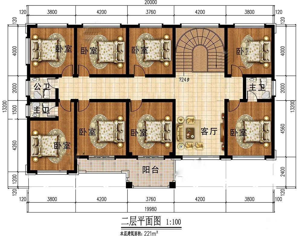 二層:8個(gè)臥室,滿足大家庭的日常起居;小客廳溫馨十足,家人相聚,促進(jìn)溝通和情感交流