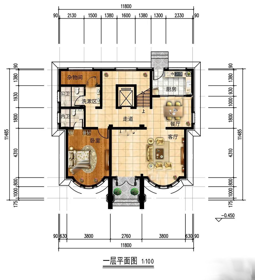 開間11.8米,進(jìn)深11.485米