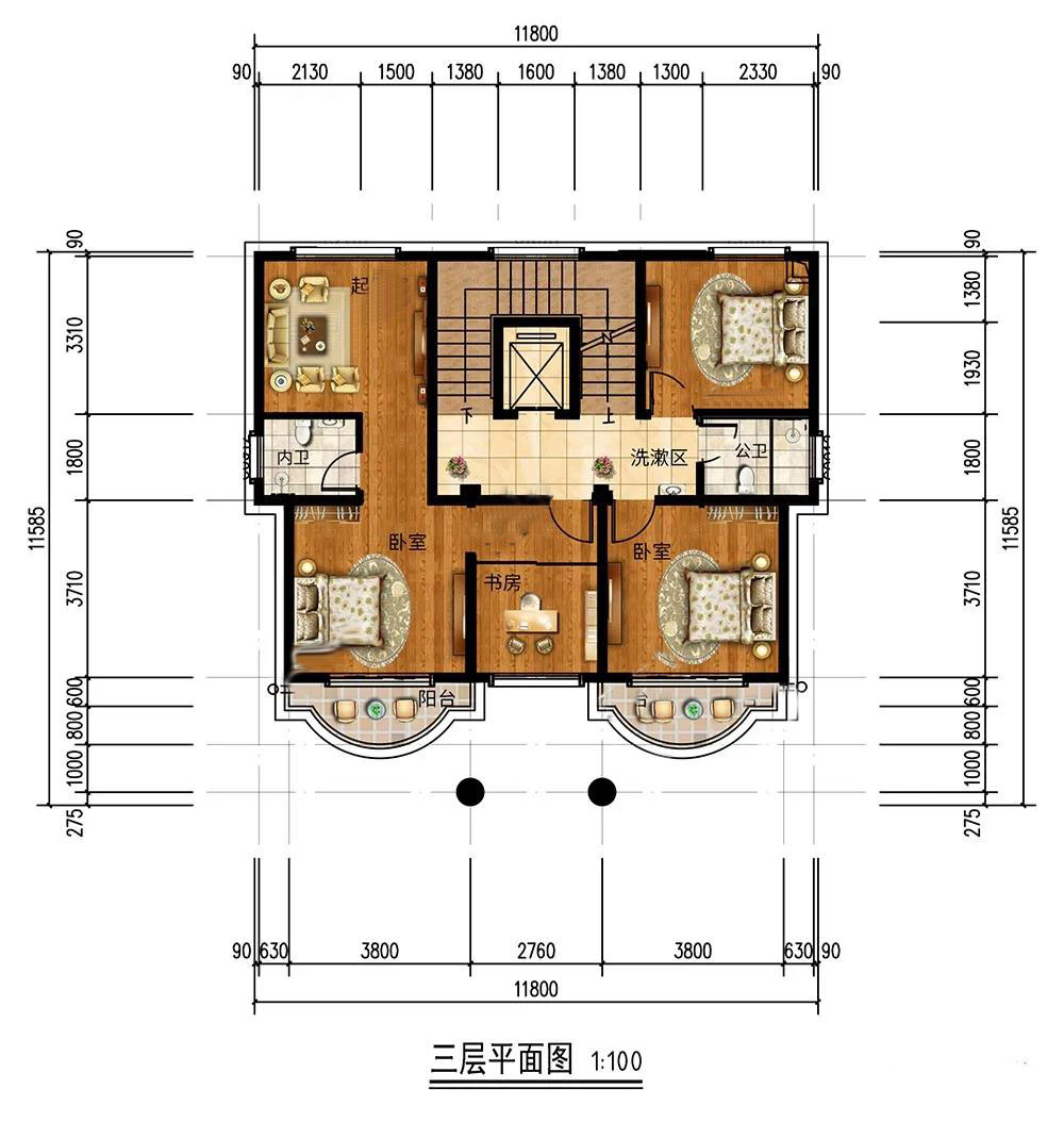 三層:3個(gè)臥室,主次分明,主臥設(shè)有書房和陽臺(tái),方便學(xué)習(xí)和休息。