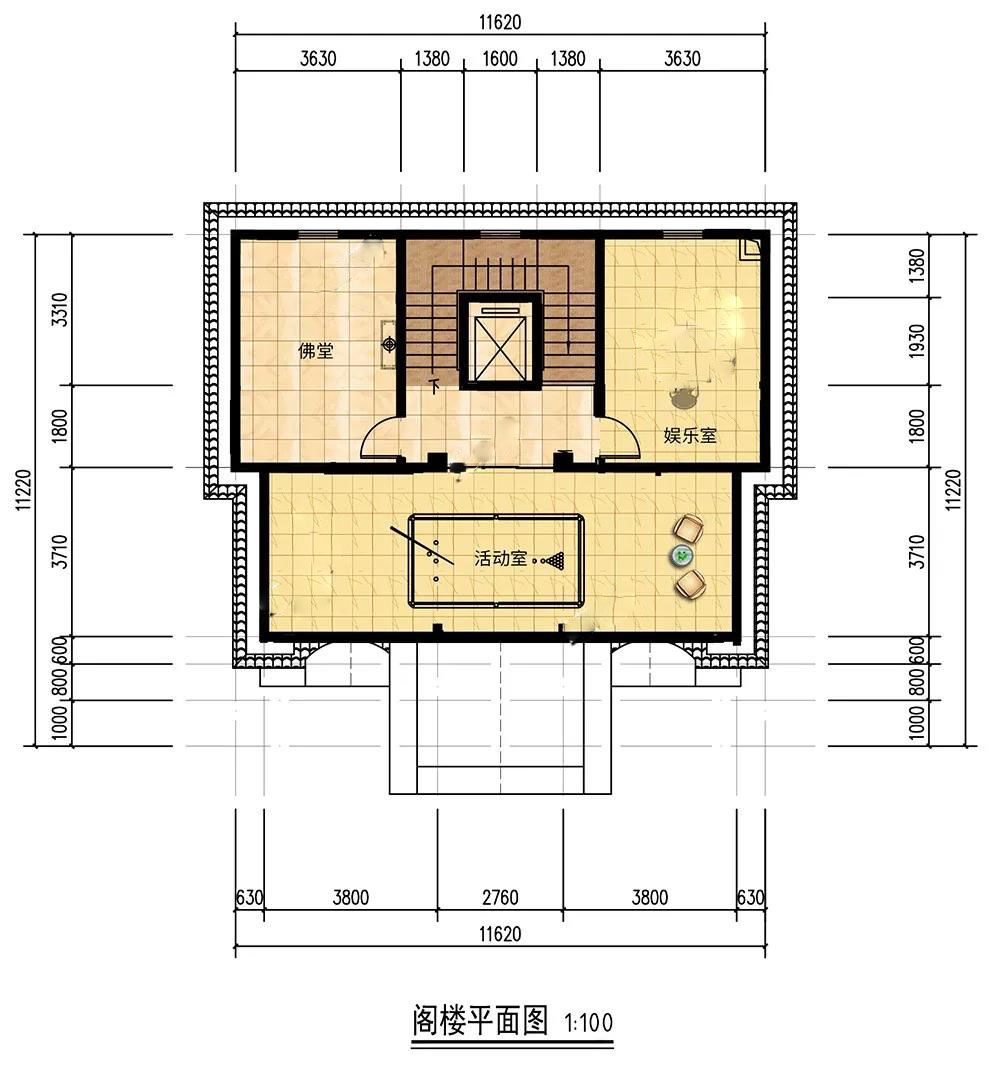 閣樓:設(shè)有佛堂,誦經(jīng)禮佛,修養(yǎng)身心;娛樂室連通活動(dòng)室,打桌球,鍛煉身體,放松身心