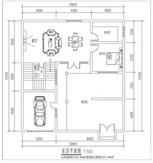 設(shè)有前庭,前面設(shè)置為車庫使用,非常實用;更加細膩的滿足農(nóng)村的居住需要,一樓設(shè)置客廳、廚房、餐廳、臥室、衛(wèi)生間。