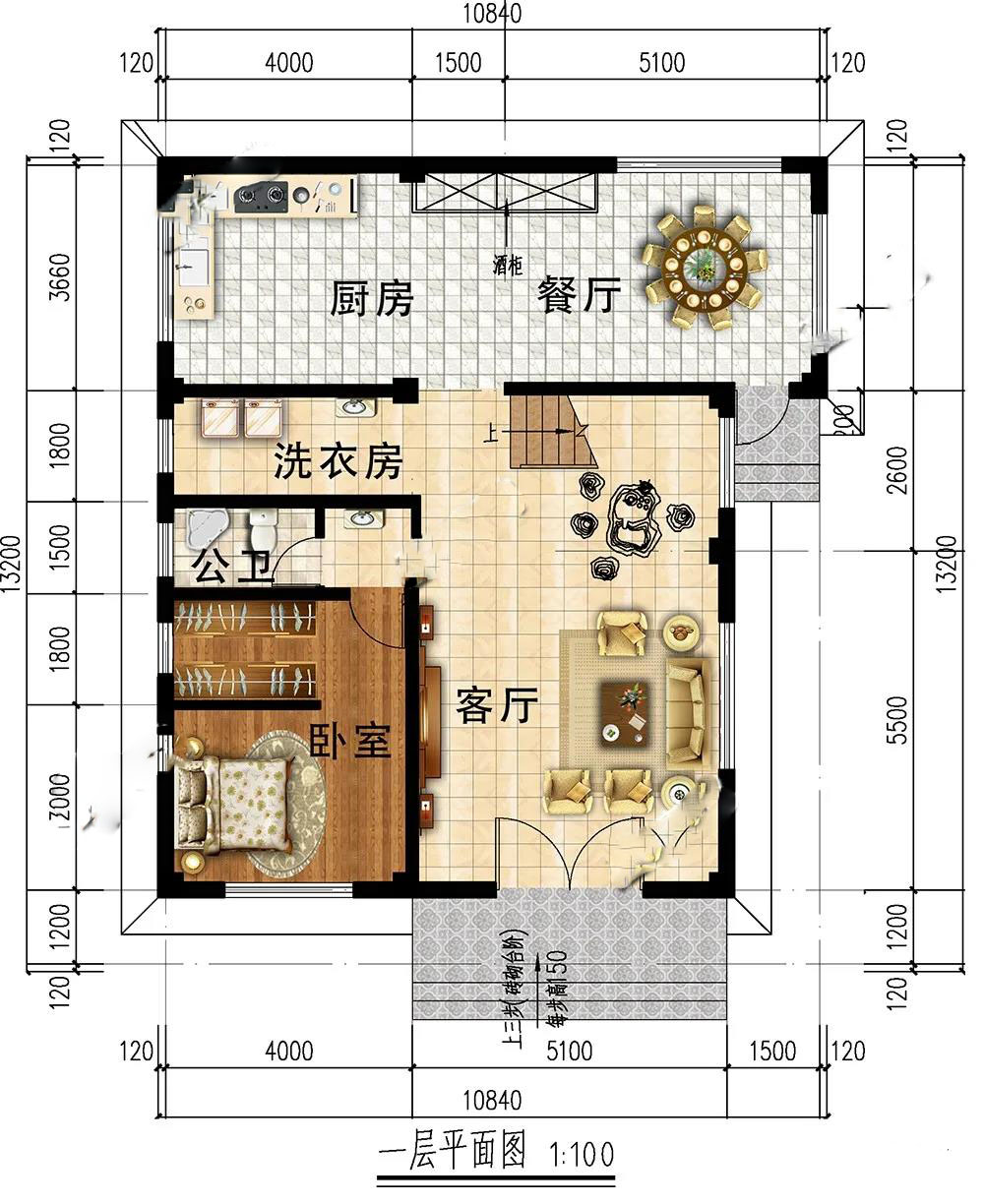 一層:入戶設(shè)客廳,溫馨緊湊,方便接待親友;公衛(wèi)干濕分離,干凈得體;超大廚房和客廳連通一體,用餐便利,還帶側(cè)門,進(jìn)出方便。