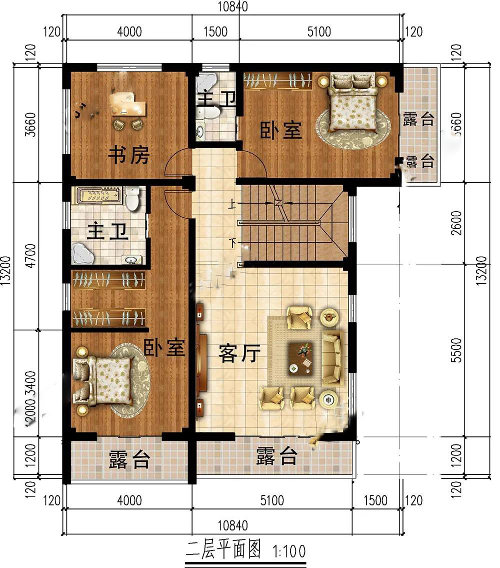 二層:2個臥室,帶露臺和內(nèi)衛(wèi),居住舒適;客廳、陽臺一體化分布,通風(fēng)效果好;書房增添書香氣。