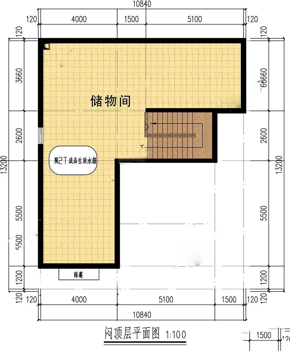 悶頂層:設(shè)有生活水箱,便于生活用水的儲存;儲物間方便存放家庭雜物,使家居生活干凈整潔。