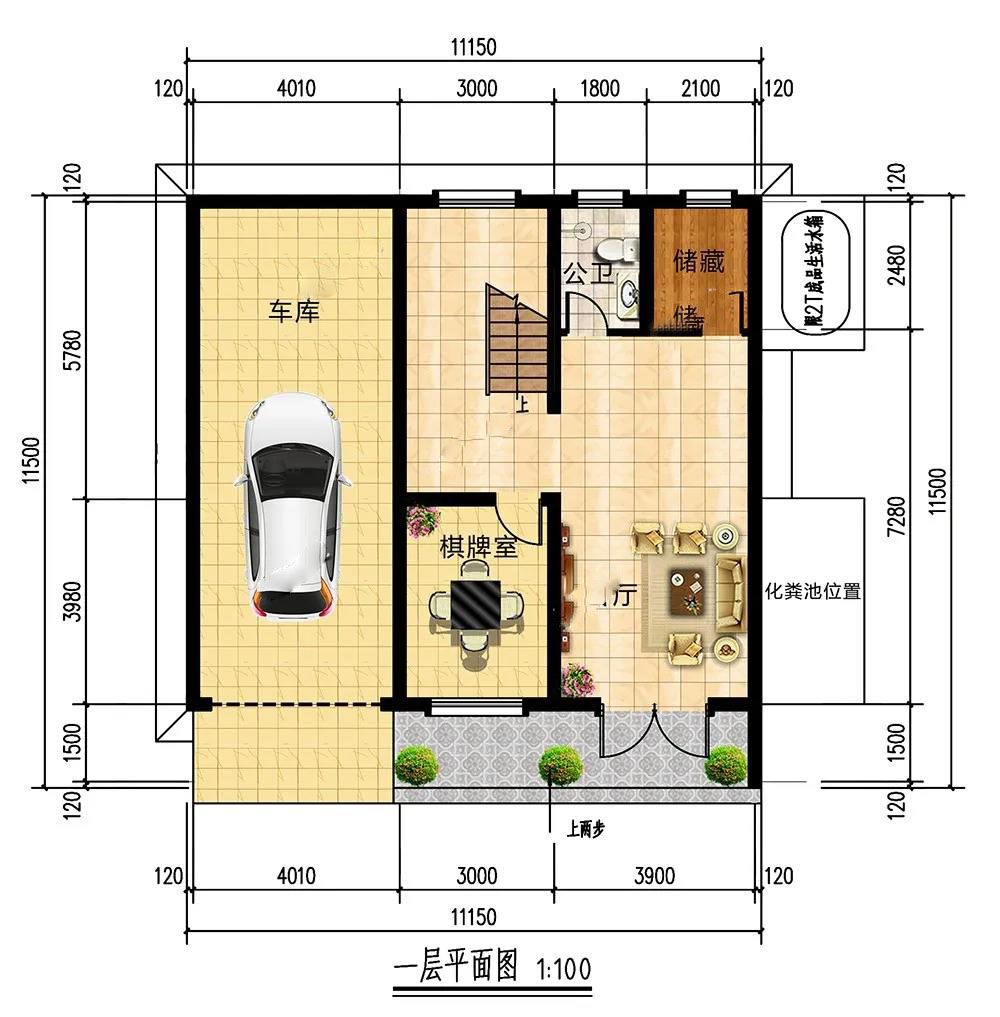 一層:入戶即客廳、棋牌室,利于家人休閑活動(dòng),營(yíng)造溫馨的家庭氛圍;廚房餐廳單獨(dú)建造,保持別墅主體沒有油煙侵?jǐn)_;車庫(kù)方便泊車用車,閑置時(shí)也可做儲(chǔ)藏室。