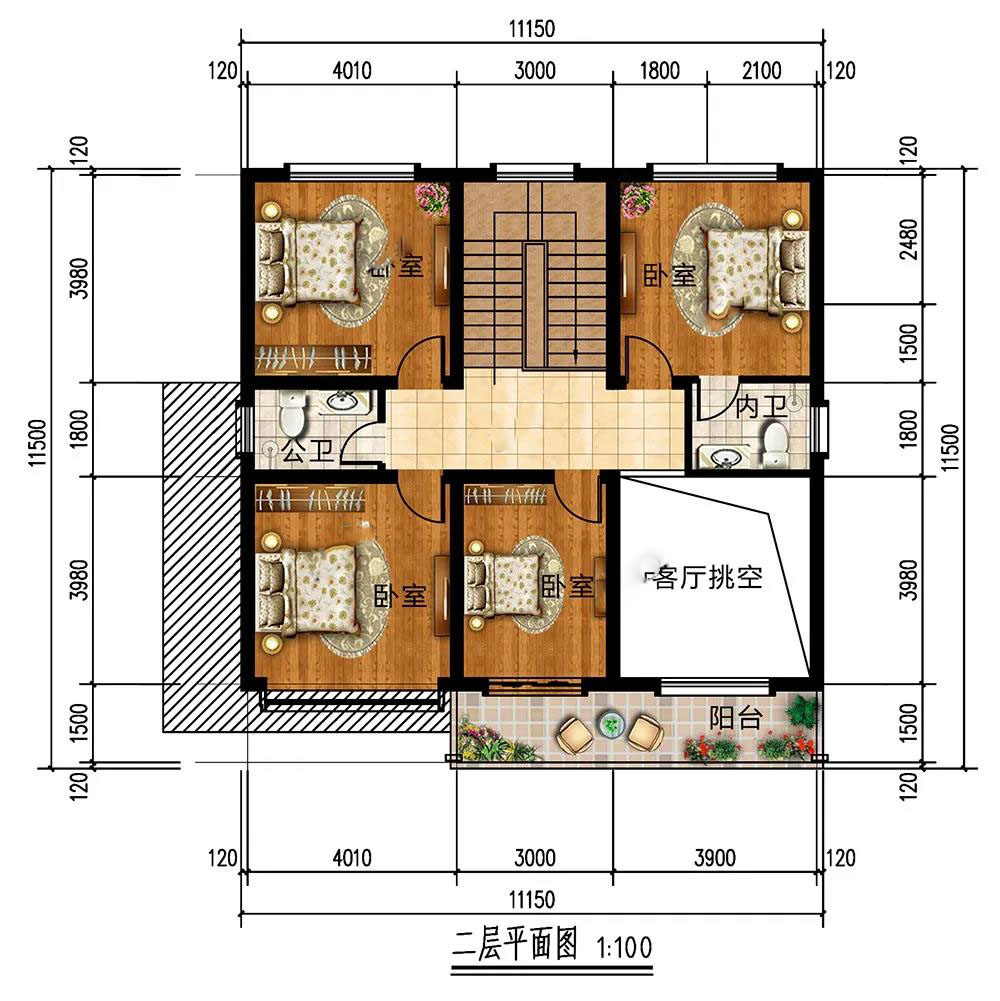 二層:4個(gè)臥室大小適中,主臥帶內(nèi)衛(wèi),方便日常起居;挑空客廳,開闊視野,提升別墅空間感;陽(yáng)臺(tái)的設(shè)計(jì)利于觀景。