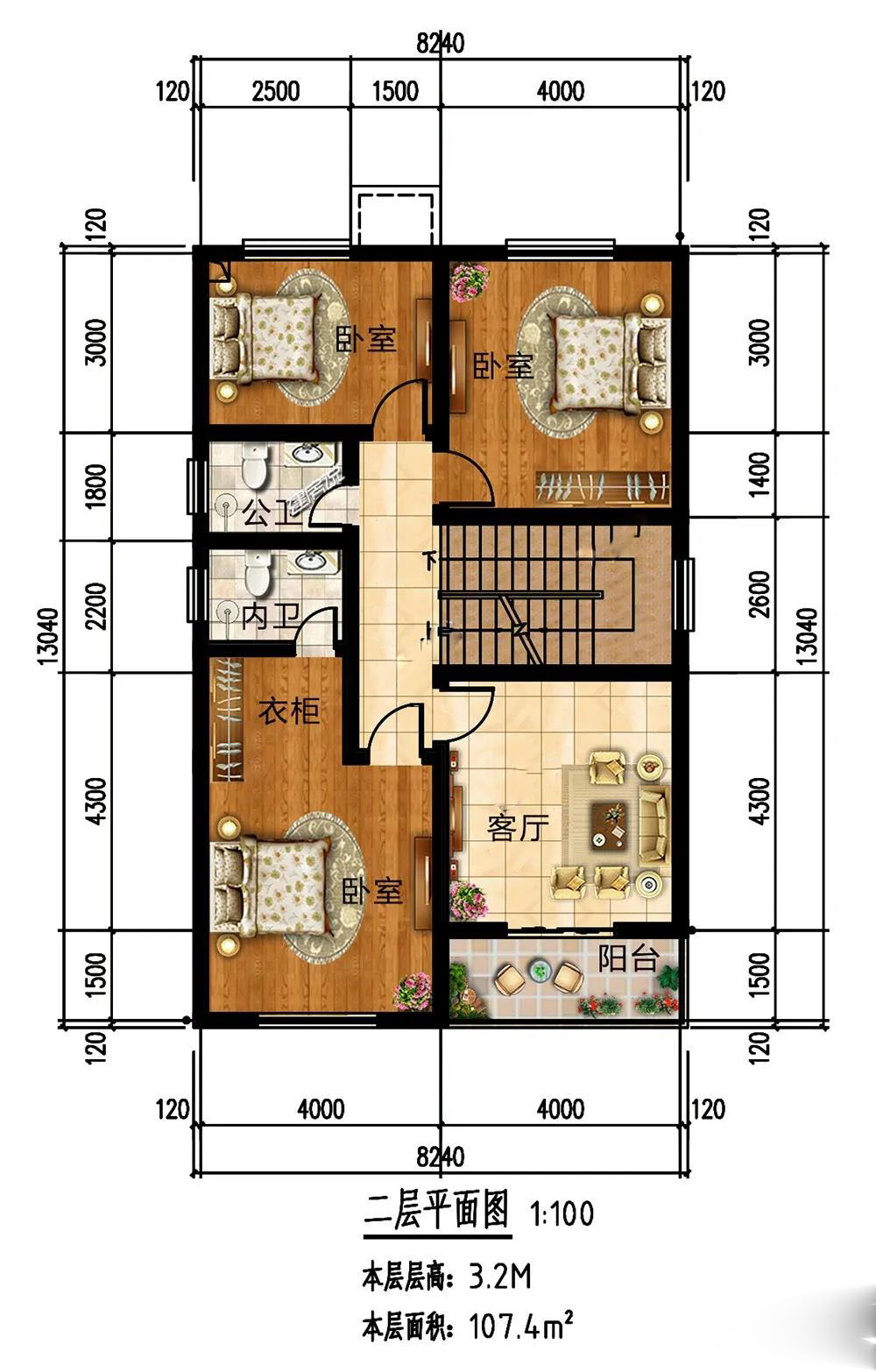 二層:3個臥室主次分明,家人居住無憂;客廳方便家人聊天娛樂,連通陽臺,通風(fēng)采光好。