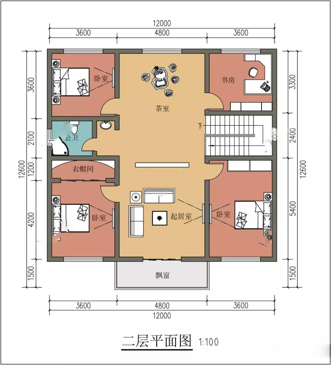 二層共有三間臥室,考慮到居室環(huán)境問題,臥室內并未設計衛(wèi)生間,只在公共區(qū)域設計公衛(wèi)方便家人使用。