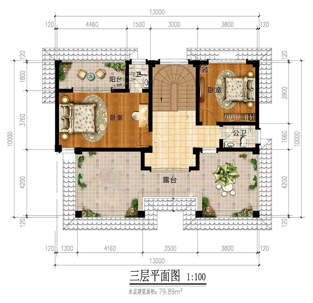 三層:臥室充裕,居住有余可做客房;寬敞的露臺(tái),晾曬、觀景兩不誤