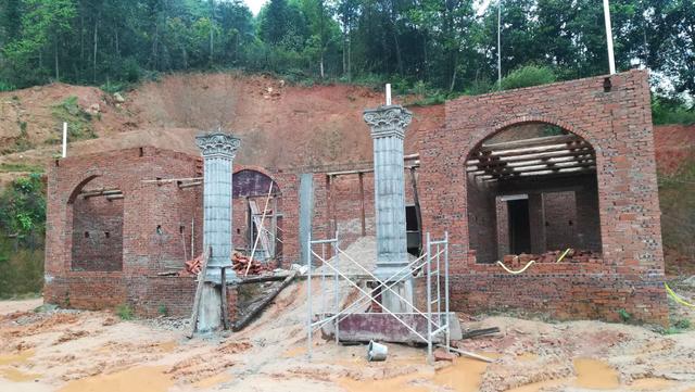 紅磚、水泥、沙子、鋼筋等主要材料的成本為5.2萬元。門前的羅馬圓柱也已經(jīng)建成,造價3000元。