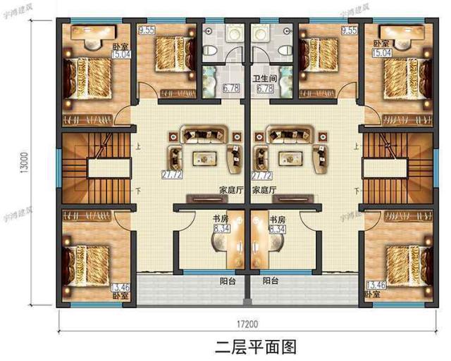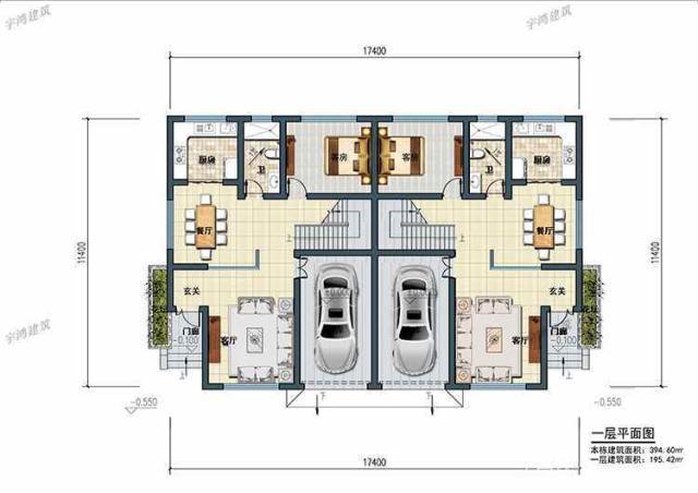 方案二:經(jīng)濟(jì)實(shí)用的兄弟雙幢三層別墅YH-A-3028