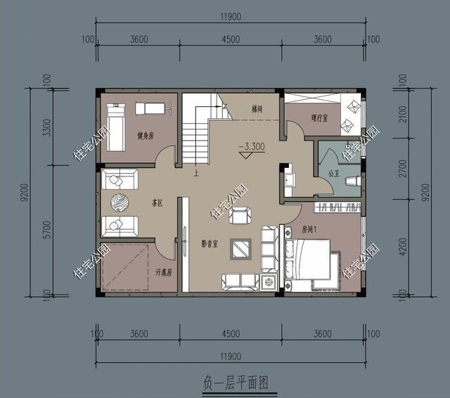 負地板的設(shè)計是水槽所在的位置。負地板主要用于休閑娛樂,設(shè)有視聽室和吸汗室。