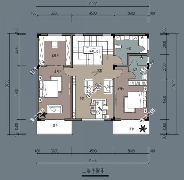 在二樓,分別設(shè)計了一個舒適的套房。房間內(nèi)的陽臺更加私密,便于家人在工作日晾曬自己的衣服。