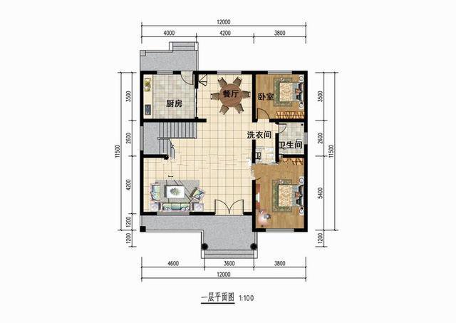 一樓是客廳,向左傾斜。設計寬敞透明,給人特別強烈的舒適感。兩個臥室位于東邊的兩個角落,公共廁所和洗衣房位于臥室的中間。衛(wèi)生間和洗衣房是分開的,這樣可以更好地組織家務。廚房位于西北角,有一個小門可以將油煙排出門外。