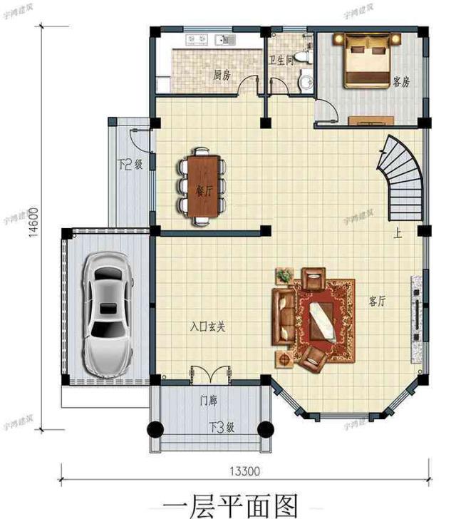 住宅簡介:這種公寓是為新農(nóng)村的一棟170平方的三層別墅設(shè)計的。經(jīng)典而美麗,經(jīng)濟而實用。這套公寓是方形的,很實用。外墻用熒光色、姜黃色和白色裝飾。顏色清新明亮,給人舒適的感覺。房間可以自由擴展,賦予生活豐富的內(nèi)涵。該空間配有多個臥室,以滿足大家庭的需要。臥室與大露臺花園相連,營造舒適的別墅花園生活。