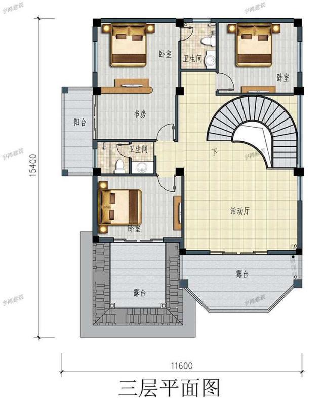 平面圖3: 170平新農(nóng)村三層小洋樓設(shè)計YH-A-3021