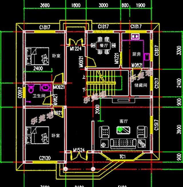 一樓:客廳,兩間臥室,廚房,餐廳,衛(wèi)生間,儲藏室,大堂