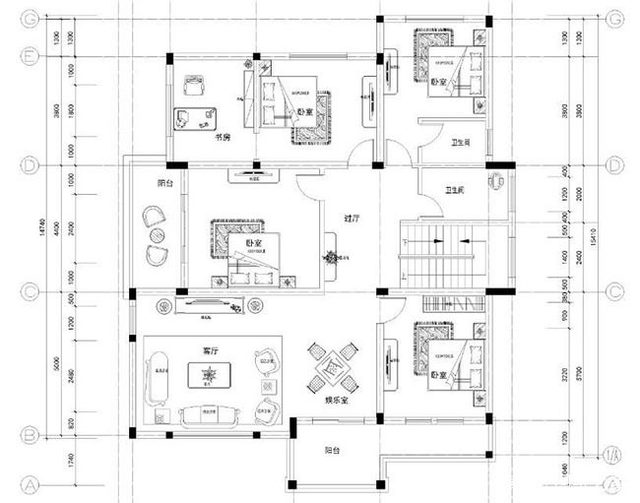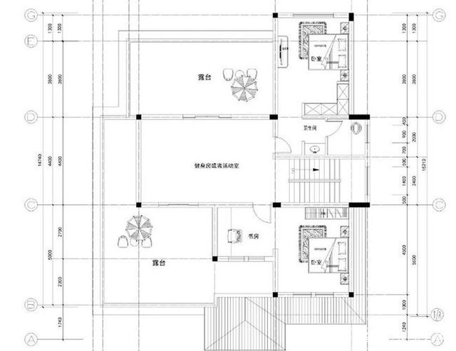 三層:活動室、臥室x2、書房、衛(wèi)生間、大露臺x2;