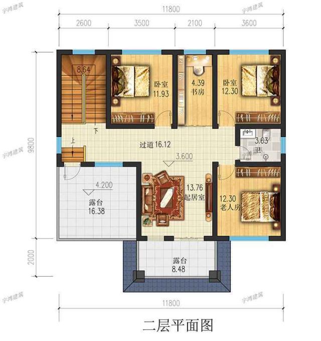 二樓平面圖展示了這座兩層別墅的精美設(shè)計方案。