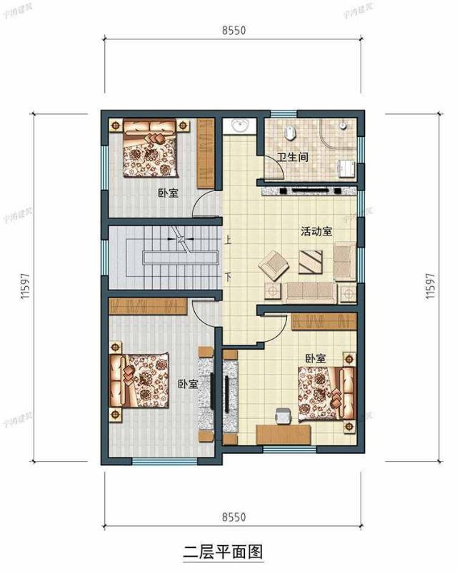 方案二:二樓簡約大氣的YH-A-2040鄉(xiāng)村別墅式建筑