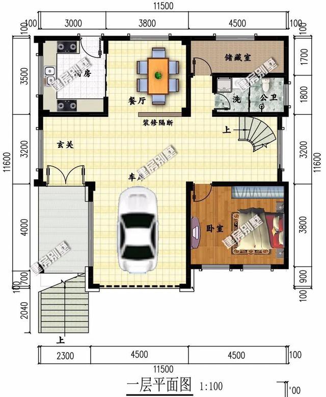 布局:一層樓,一個(gè)房間,兩個(gè)大廳,一個(gè)廚房,兩個(gè)浴室。公共浴室分為男浴室和女浴室,這在鄉(xiāng)村別墅的設(shè)計(jì)中很特別。二樓有五間臥室,配有休閑廳,每間臥室都不大。