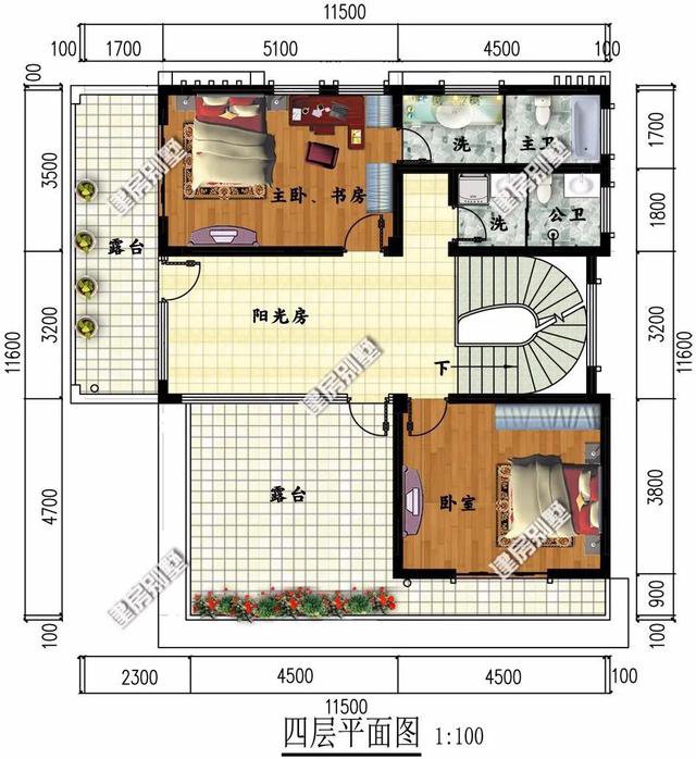 戶(hù)型二:11.511.6米,框架結(jié)構(gòu),現(xiàn)代別墅四層設(shè)計(jì),外部裝修材料與戶(hù)型一非常相似,一層設(shè)計(jì)為架空層。