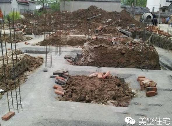 基礎(chǔ)打好后,就開始進(jìn)行一樓的砌磚墻,還有地面、柱的澆筑。