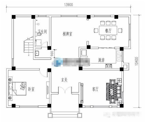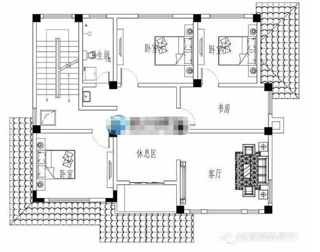 大樓的入口是門廊,右邊是客廳,左邊是臥室,還有廚房和餐廳、棋牌室和衛(wèi)生間。二樓設(shè)計(jì)休息區(qū)、客廳、三間臥室和獨(dú)立書房、衛(wèi)生間;建筑結(jié)構(gòu)簡(jiǎn)單,布局合理,空間利用率高。